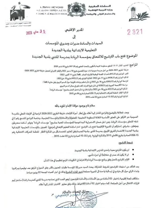الصفحة الرئيسيةمستجدات،مدرسة الريادة، مراسلة اقليمية رقم 2321 بتاريخ 31 ماي2023 الناشر :jarida tarbawiya -يونيو 01, 2023 مراسلة اقليمية رقم 2321 بتاريخ 31 ماي2023 التسميات مستجدات،مدرسة الريادة، Facebook Twitter مشاركة:مراسلة اقليمية رقم 2321 بتاريخ 31 ماي2023 Facebook Twitter WhatsApp Pinterest LinkedIn Reddit Tumblr Telegram Email
